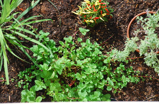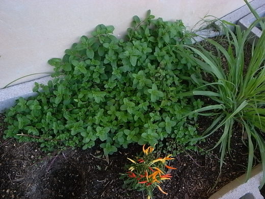薄荷好種歸好種, 但是一定要有充足的陽光和水份才行(應該是不論品種). 我買了一盆橘子薄荷(orange mint), 說明書上寫喜半日照, 結果被我養得要死不活, 後來實在看起來太礙眼了(嚴重打擊我種植物的自信心), 被我丟到戶外去和一般薄荷在同一塊陽光區中(橘子薄荷還是放在原來的盆子裡, 因為那時覺得它應該快掛了, 不用換盆), 結果沒想到它居然敗部復活, 長出不少新葉子. 我想也說說明上的"半日照"可能只適合七八月份時, 太陽一天十小時沒完沒了的曬的日子.