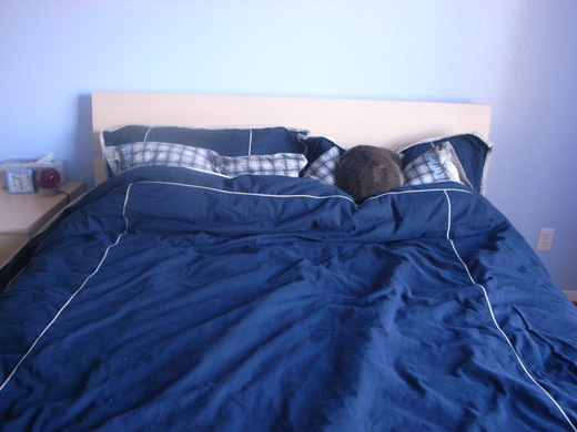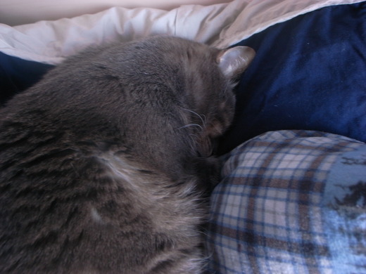 Mew的本名是Mew, 不過我常常叫他Mew-Mew. 我先生則常叫他Mew-Mew-ka. 這些照片是在客人走後, mew馬上跑去睡在枕頭上... 還一次睡二個... 看他把頭埋在枕頭裡, 毛又澎澎的, 真是可愛.