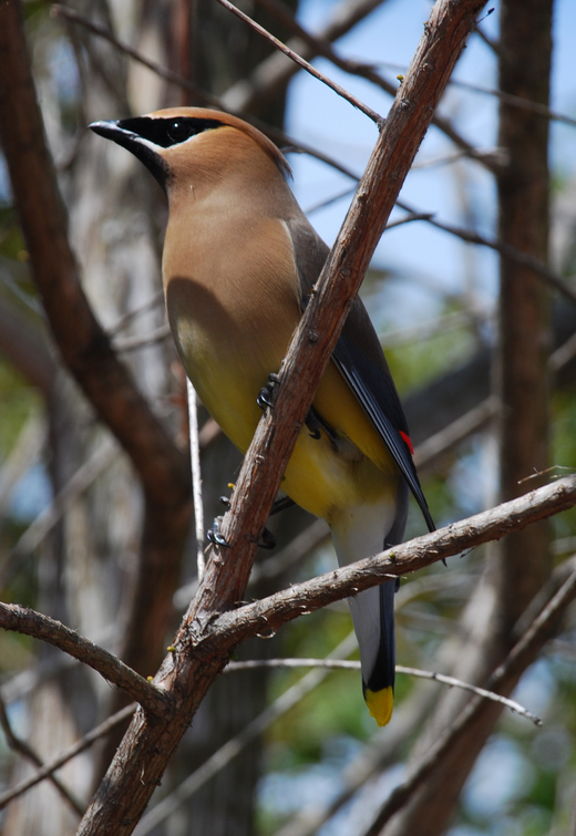 我們忽然看到好多隻鳥在一棵樹上. 定神一看, 他說, 他知道這種鳥. 黃色小尾巴, 通常在這個季節裡會出現.