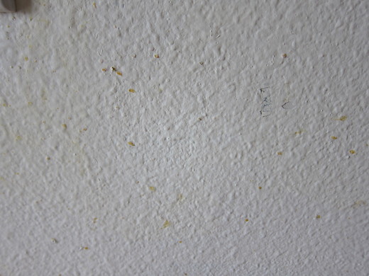 牆壁上也被噴到不知名的東西(圖一及圖三), 可能是含糖飲料之類的. 乾掉後, 就粘在牆上. 真是有夠難擦, 幾乎是得一個一個的摳掉.