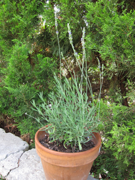 我喜歡薰衣草, 雖然書上老是說薰衣草喜歡日照, 但是, 它並不喜歡天氣太熱的地方. 所以除了一棵我種在樹蔭下的薰衣草還活著之外, 剛來時種的所有薰衣草全在2009年的夏天陣亡了. 而且薰衣草如果種在盆栽裡, 長的比較不好. 看來我的薰衣草只好等以後如果再搬家的話再說了.