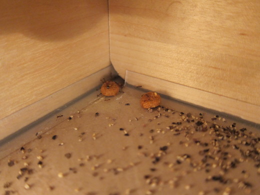 3. 使用黑胡椒粉, 灑在螞蟻必經之路. ---- 我試了, 不管用. 我家的螞蟻不怕黑胡椒粉. 看照片一, 這是我灑了黑胡椒粉二個小時後. 剛灑時, 螞蟻會逃跑, 因為他們不知道那是什麼, 但過一陣子, 他們就會回來, 繼續未完成的工作.