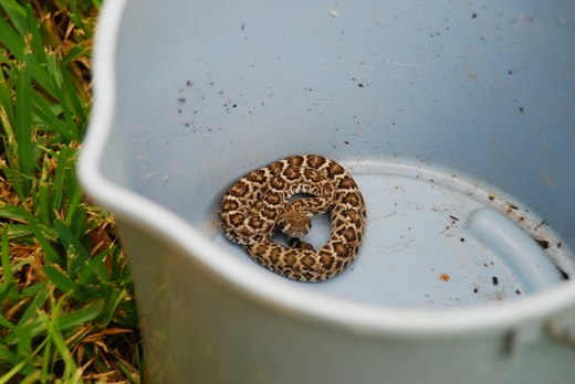 我和我的鄰居在星期五的時候為了檢查一個灑水系統, 我發現了一隻小小響尾蛇寶寶.
