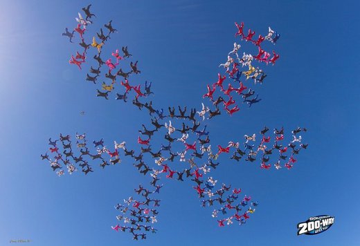 喜歡做大型空中接力的高空跳傘人都是跟著主辨人到處跑. 每每一個大隊接力活動, 常見參與人來自不同地區, 甚至不同國家.