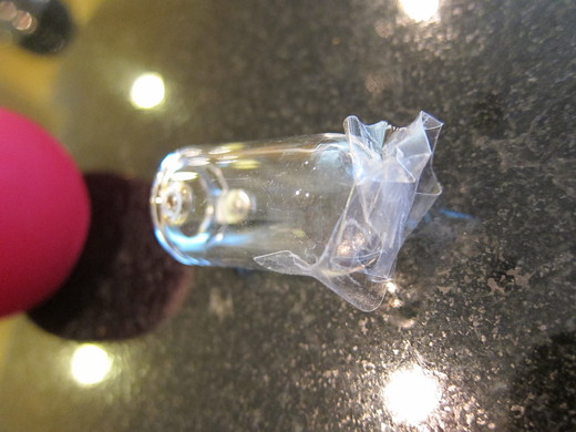 圖三是雙面膠帶還貼在透明燈罩上的樣子.