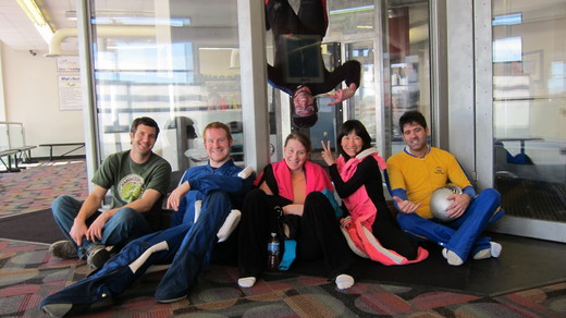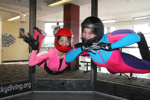 一天半之內的時間, 每個學生都要在風洞裡飛足一個小時. 我和我先生則比一小時多一些些, 最主要是進去陪飛.