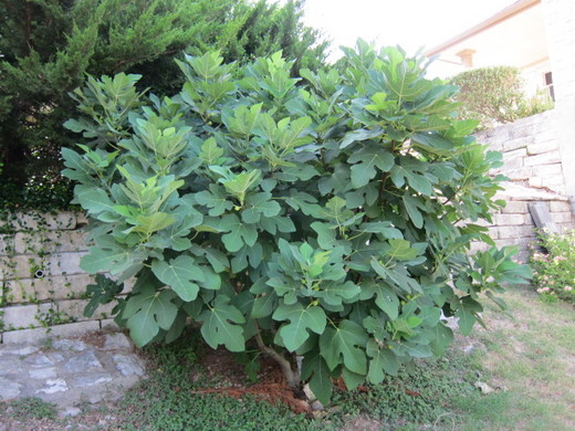 我的無花果樹已經下土二年了. 去年只光長葉子, 果子只長了二十顆, 而且大約一半都被螞蟻或小鳥吃掉了. 今年長的就不少, 唯一缺點, 今年特別乾旱, 所以我每天都得澆水, 有時早晚得各澆一次.