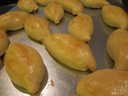 3. 我的高麗菜和洋葱切的不夠小, 所以在包時有點難包. 後來我覺得我的麵包可再做的小一點(最好半個巴掌大就好), 餡料應該要包多一點.