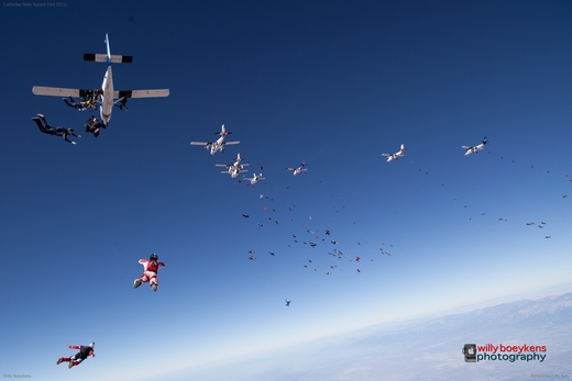 昨天, 整個CSR落幕. 我們正式創了新了加州最大空中花式隊形skydive formation(圖一; 我在五點半方向)的記錄, 200人花式. 加州自1999年起, 歷年的加州最大空中花式裡的都只有女性而以, 所以這次男人終於可以揚眉吐氣了(不知道為什麼混合組的之前都不成功.)
