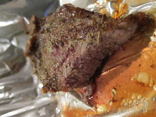 烤10分鐘是半熟(圖一). 沒血, (血色含在湯汁裡, 肉裡是沒有血的) 雖是半熟, 但還是很軟. 我下次要試試8分鐘.