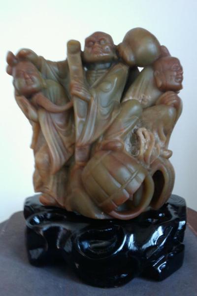 這是我的收藏--壽山石石雕擺件,三個和尚挑水,神情各異,饒富趣味,石材呈現如艾草綠般的色澤,較為少見;其實本件作品,恰巧反映出人生中許多困局的主因,多在自掃門前雪的自私心態;個人謀求自身私利是人之常情,但為政者卻也處處營私,想的做的都要為自己留名加分,卻無視公眾利益,自然國政就日益紛擾難安了!藉物抒懷!分享欣賞!