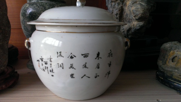 這是我的收藏--粉彩仕女圖瓷罐。畫工典雅傳神,書法俊秀且樣式古樸,已有一定的年代,工藝十分細緻!