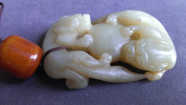 這是我的收藏--和闐白玉瑞獸帶鉤,原先到手時,還是半生坑,久經盤玩,已顯現溫潤光澤,整體形制古樸自然,相當大器!分享欣賞!