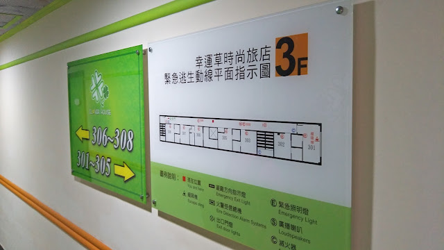 ▲每一層樓都有逃生路線指示圖,一層樓有 7間房間,