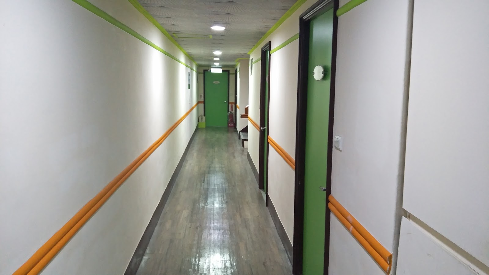 樓層的走道燈光明亮且乾淨但感覺的到有使用的歷史。