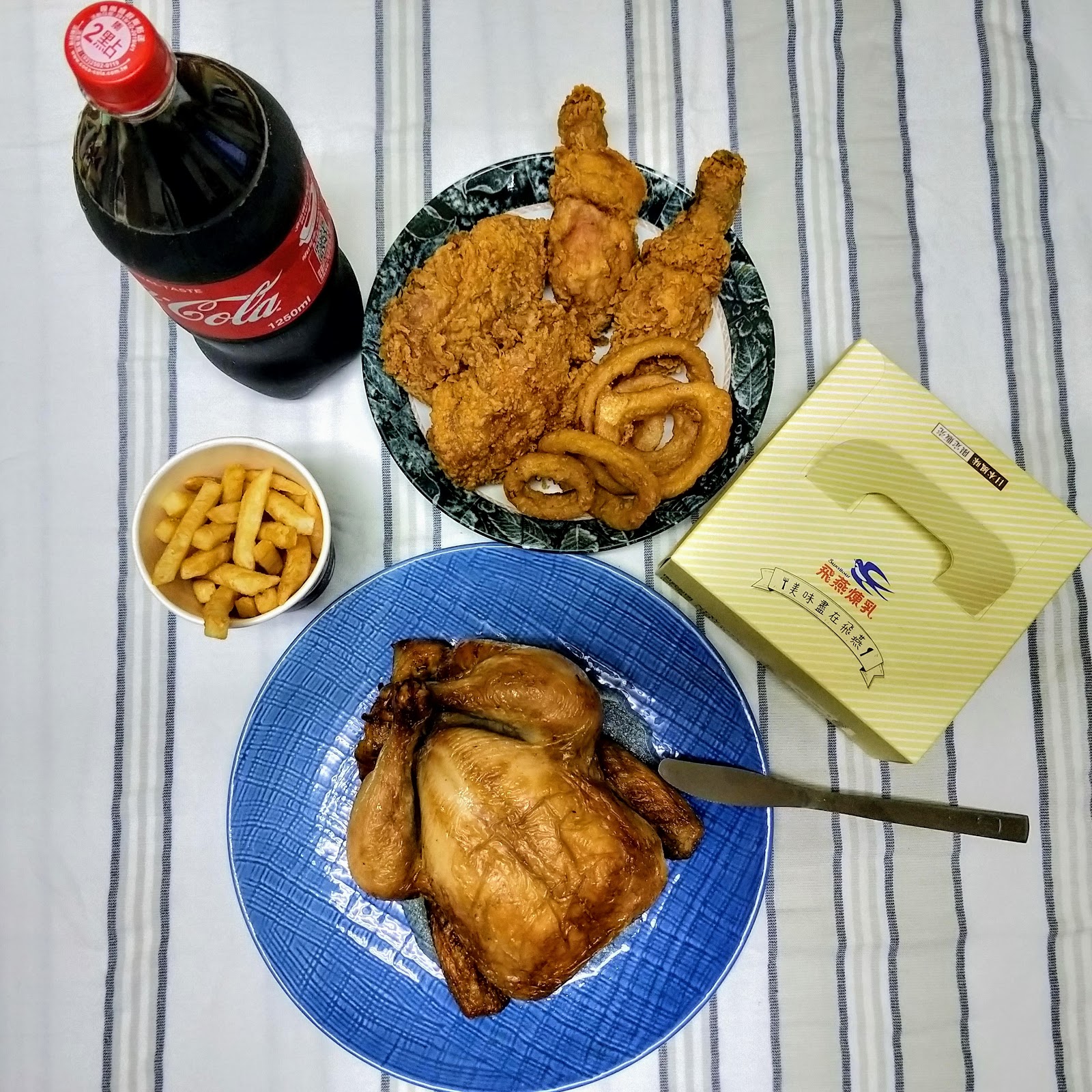 烤雞的熱度附帶著幫香脆炸雞保溫,