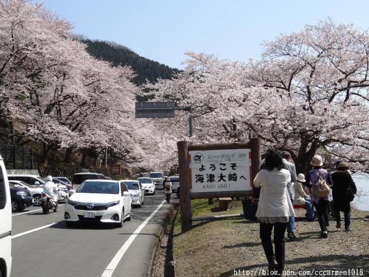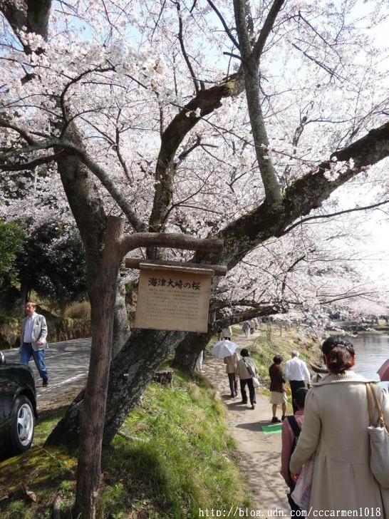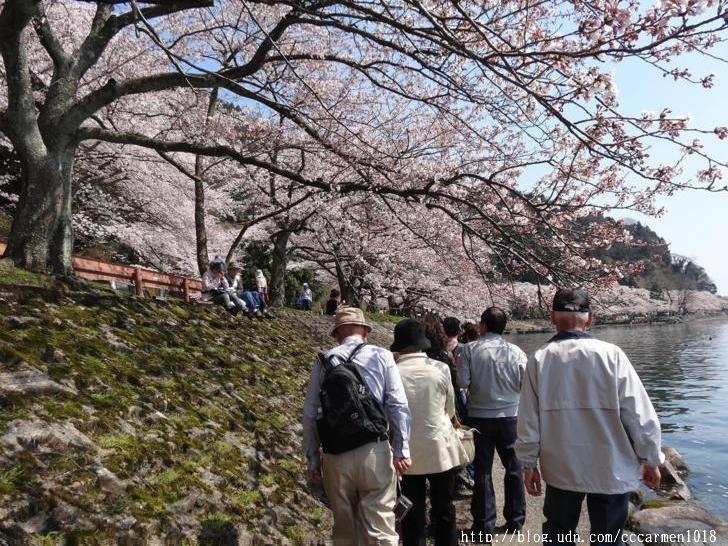 海津大崎是首站,據說這裡的櫻花有數千本之譜,真的要徒步走完這站的環湖櫻木花道,可得花上些體力與時間。礙於體力、時間與行程之考量,旅行社安排大家散步一小段。接著就是以遊覽車行駛於滿滿櫻木花道的環湖公路上,讓大家以另一種方式來賞櫻,若非旅行社這樣安排,可蜜還真沒機會可以做這麼大的嘗試:繞琵琶湖一圈。