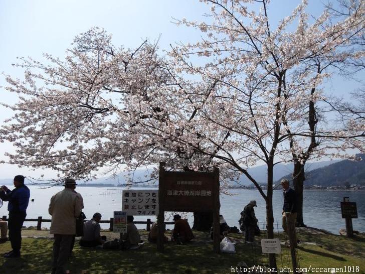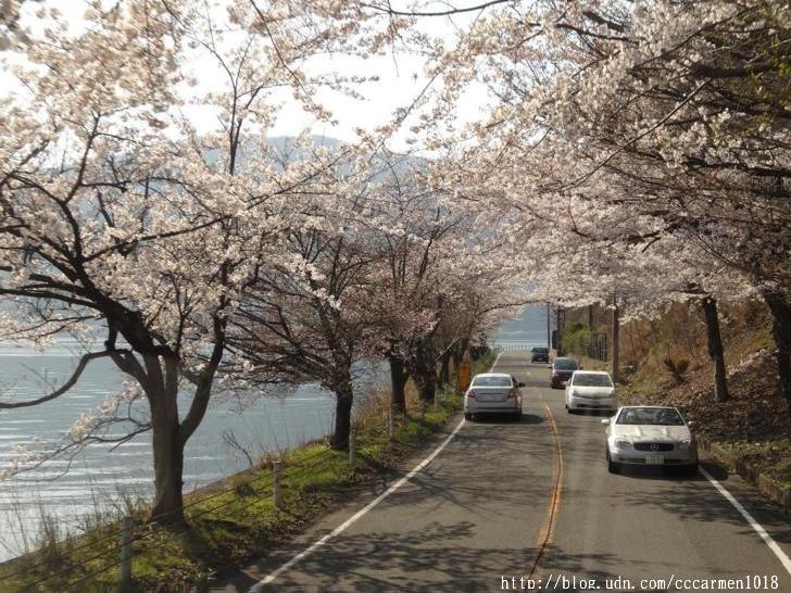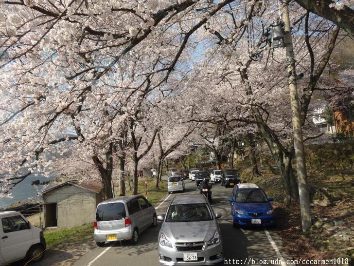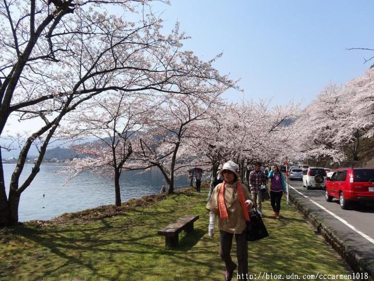 一路環湖賞櫻,可蜜竟然都是面對車後賞景,透過後車窗可蜜沿途拍下數百張相片,搭遊覽車的時間不算短,以前跟團時,可蜜還常會睡著,這一趟跟日本旅行團可蜜竟然整路都沒睡呢!可見得這行程著實讓可蜜與家人都捨不得睡。只怕錯過美景吧!