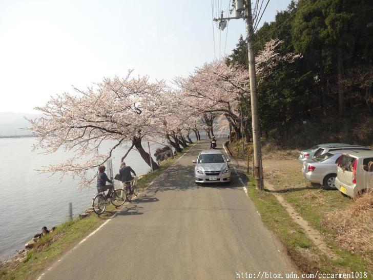 環湖公路一路蜿蜒,有沿著湖邊的,也有一路往上爬坡的部分,剛好都可以從不同角度、高度與方向欣賞這個全日本第一大湖的春景之美~至高點應該是奧琵琶湖公園停車場那一站,相片在雪克斯那裡,來不及分享給大家~sorry~