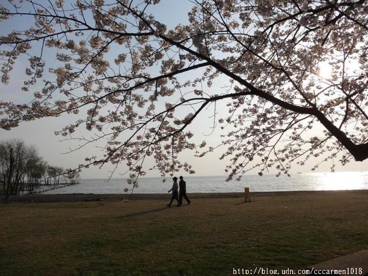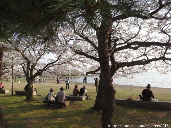 之前,可蜜對琵琶湖的印象就是「大」、「京都飲用水來源」及「鳥人大賽會場」,2006年電影大奧在這裡拍攝的,也知道琵琶湖是知名的賞櫻景點,但實際自己走一趟後才發現,環繞琵琶湖的櫻花樹真的很多,環湖一圈下來,可蜜覺得自己看到的櫻花樹應該有上萬本之多吧!