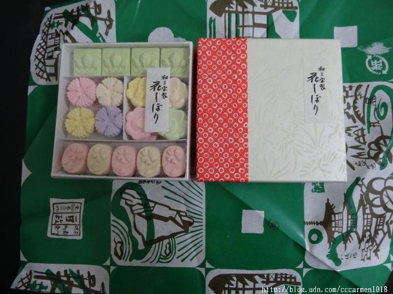 三盆糖就像照片中這樣子,可蜜還曾看過把三盆糖拼成一幅畫的樣子呢!美麗的讓人捨不得吃掉,因為缺一角的畫就不美了。之前,詹姆士還買過三盆糖排成清水寺風景的呢!或者是弄成一幅像是枯山水般的畫作金平糖。對於喜愛三盆糖這種美味者來說,除了可口外,還非常賞心悅目呢!(之前買過很多種不同樣式的三盆糖,但沒想過有一天會在格子裡介紹給大家,所以就沒有拍照留存啦!)
