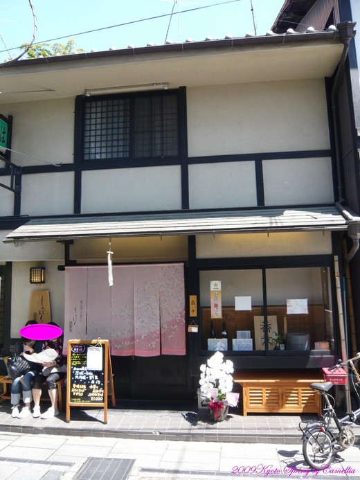 好不容易到了本店,但結果還是一樣----一位難求呀!本店的布置裝潢與平等院分店不太一樣。本店的感覺像是走入一個古老的京都民家,經過一條黑暗長走道後,突然看到明亮的日式庭院,下面這張就是他們的門面,可惜相機沒電啦!沒拍到其他部分。