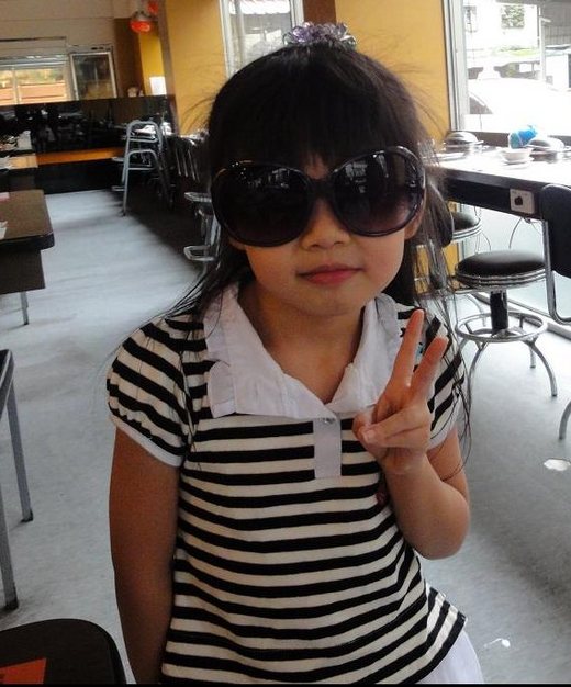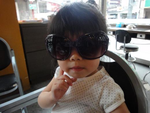 那天我們一起出去吃飯,烈日當空的正午時分,可蜜我臉上帶著超大墨鏡遮陽。正當在等紅綠燈之際,庭庭拼命叫著我說『ㄚ姨、ㄚ姨、你把太陽眼鏡拿下來看這個啦!』原來我的墨鏡鏡片超級黑,小小的庭庭誤以為我看不見路上的東西呢!真的是傻得可愛呢!如果ㄚ姨我戴著看不見路的墨鏡,怎麼抱你、牽你過馬路呢?!此舉惹得我們幾個兄弟姊妹哈哈大笑。