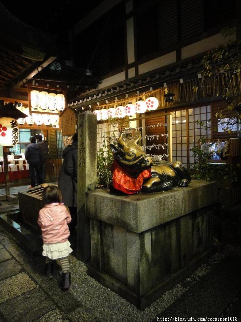 錦市場和四條這一帶是我們全家最喜歡和熟悉的京都景點之一,每次到京都一定選擇能步行至此的住宿點,同時也一定一再逛錦市場,而每次到錦市場也一定到錦天滿宮參拜,孩子很喜歡這個迷你天滿宮,也必然要摸一摸神牛,然後和神牛合照後才心滿意足的離開,和神牛合照的照片中,孩子從5,6歲一路拍到現在的14,5歲了!這個迷你版的天滿宮,真的是麻雀雖小五臟俱全呀!真的滿可愛的。雖然常路過,這次第一次參觀,感覺也真的很好呢!