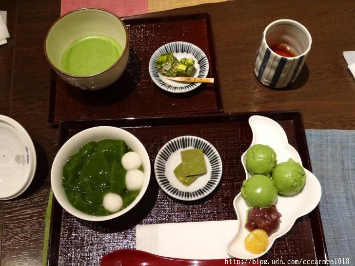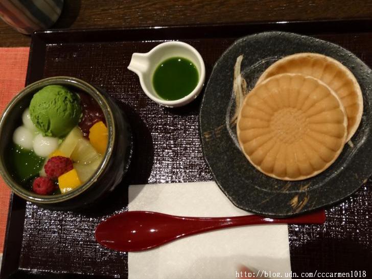 這套甜點冰品的吃法很多樣、又特別,旁邊那個綠色的是濃抹茶液體,除非你超不喜歡甜點的,否則可蜜建議你最後再加進去吃另一種味道即可。因為太早就加入冰品裡,可能會讓喜歡甜食的人覺得不甜囉!