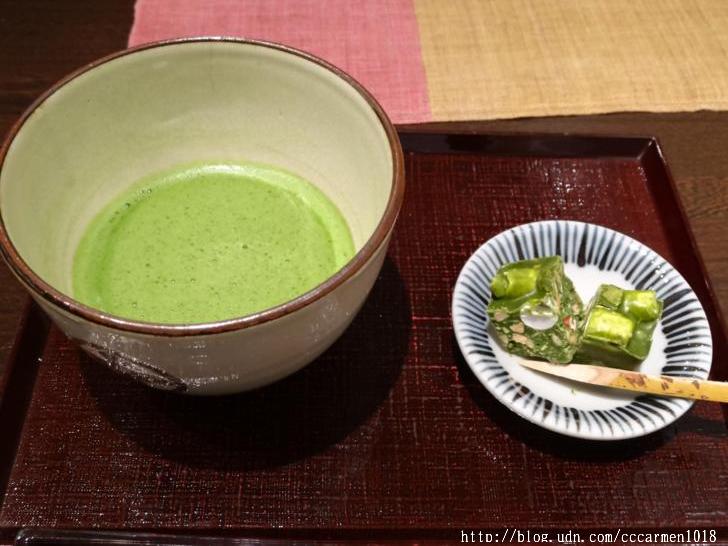 原本點的是菜單裡的這一個,但可蜜決定來個加價購變成一套餐囉!加點一杯中存藤吉的抹茶,抹茶還附上兩個好吃的茶點,這兩個茶點也很令人驚豔,濃濃抹茶味道、搭配濃厚的牛奶味與堅果,竟讓人覺得入口即化呢!若不想喝抹茶的人,也可以加點焙茶喔!