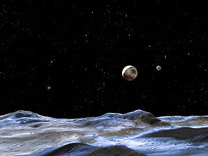 但是奇妙的是, 冥衛無論繞著冥王星旋轉或自轉, 也都與冥王星的自轉週期相同,都是6.37天。多麼美妙的巧合, 多麼神奇的因緣, 若是有人能在冥王星上,他所能見到的月兒, 都將只有一種形貌, 眉月或半個月, 唯獨只有處在冥王星上與冥衛正對的那一個點, 那個他將不會見到月昇與月落, 他只會見到完整的圓月, 若是冥衛上也有一個她, 那即使日換星移了, 時時刻刻間他們卻能始終形影不離, 四目相對。