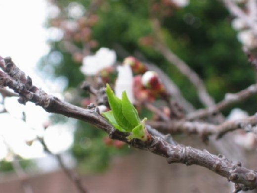 自家後院的杏子樹、李子樹、桃子樹都開出燦爛的花朵,並蹦出鮮綠的葉芽。