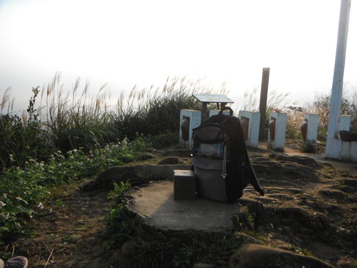 基點平台路ㄟ獨享。拍完基點照,休息賞景。該有的展望卻被空污遮蔽,讓美麗景觀大打折扣。有從柏油路上來的溜狗的民眾,路ㄟ詢問柏油路去向,卻得到柏油路可通往好幾個地方,還是得不到開車上來的路口在何處,或許找一天,路ㄟ帶著GPS自己給他找上來吧!!