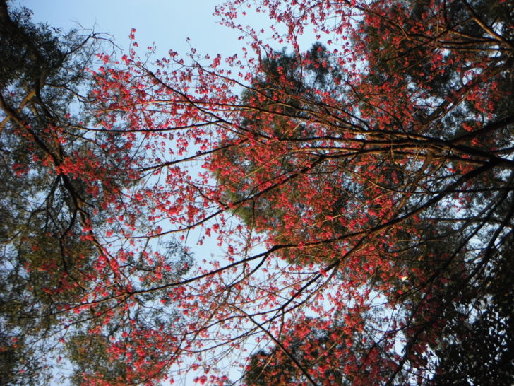 0800取原路回到青德宮後,取左柏油路緩下,路旁櫻花已含苞,相信春暖時節,這裡會有可預期的優美景觀才是。