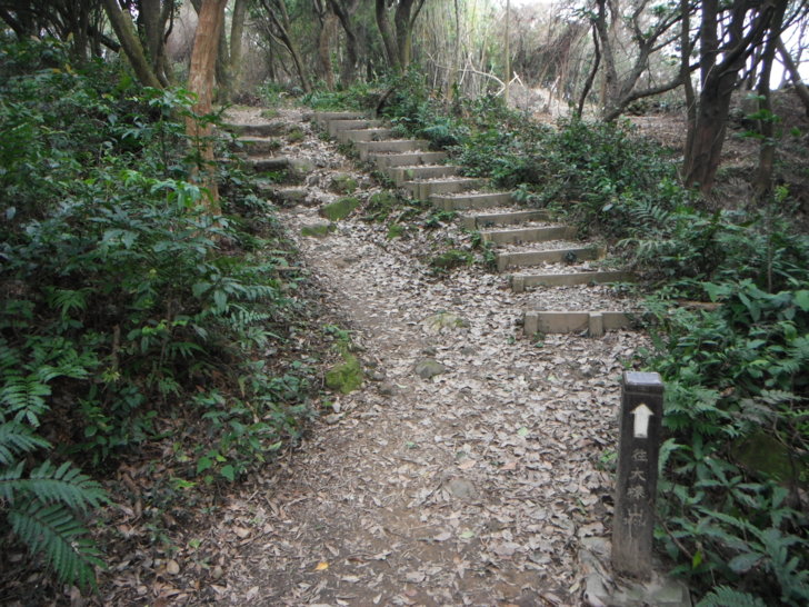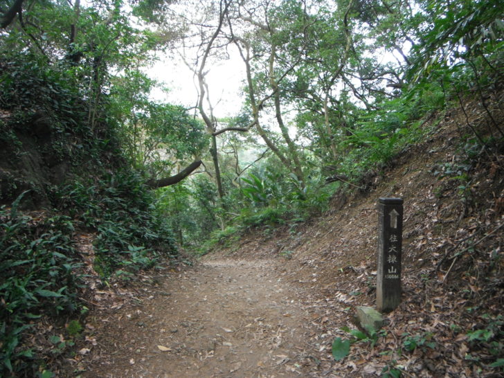 0810大棟山第二登山口(H240m),取右進入登山小徑。前行不久叉路,右往第一登山口,直往大棟山,取直行。緩坡步道,走來輕鬆。