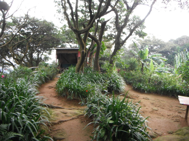 0907"三仙台"(H320m)。美麗悠雅的休息平台。路ㄟ沒注意平台上叉路,取直行,竟轉為陡下坡,實在一路走的太混,笨路ㄟ竟下到柏油產道才驚覺錯路,雖然順柏油路上行,一樣能走到大棟山,只是這並不是路ㄟ要記錄的路程,反正路並不難走,取原路折回。