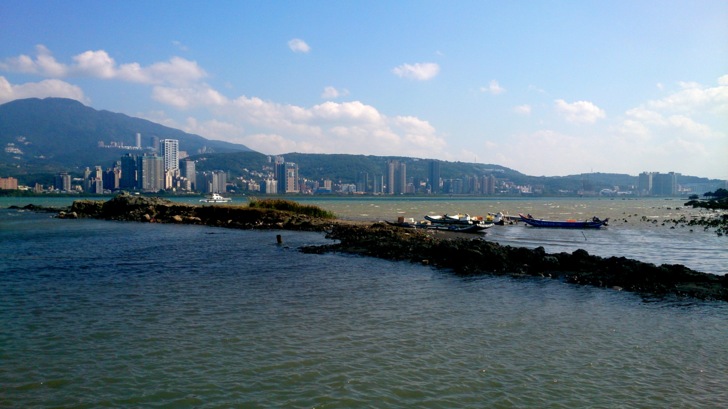 ↓走完五福宮,取道西濱回程。在八里左岸停留嘻春,除了人潮還是人潮。晴朗的天空,在左岸碼頭裡,有著明媚的風光。