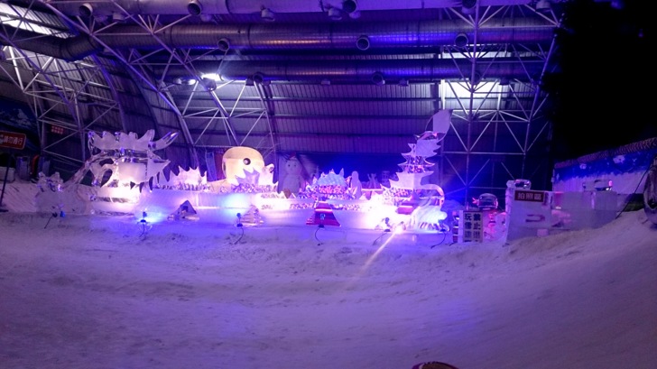 ↓新設的滑雪場,從約23度的高溫進入-6.6度的冰宮,體驗人造滑雪場下衝的樂趣,雖然暢快,不過,好冷喔)))))))))))))))))))