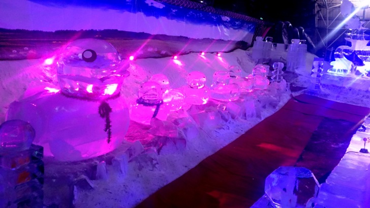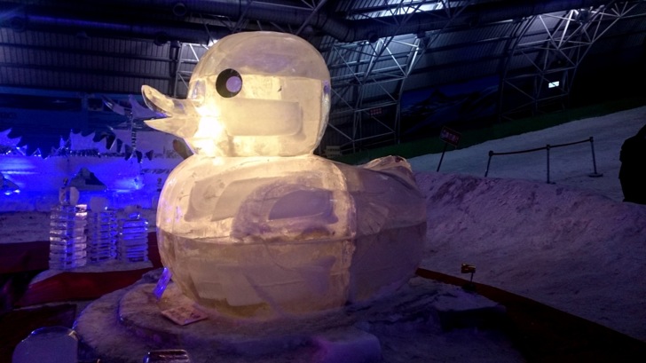 ↓冰雕小鴨,在燈光的透射下,展現不同的丰采。