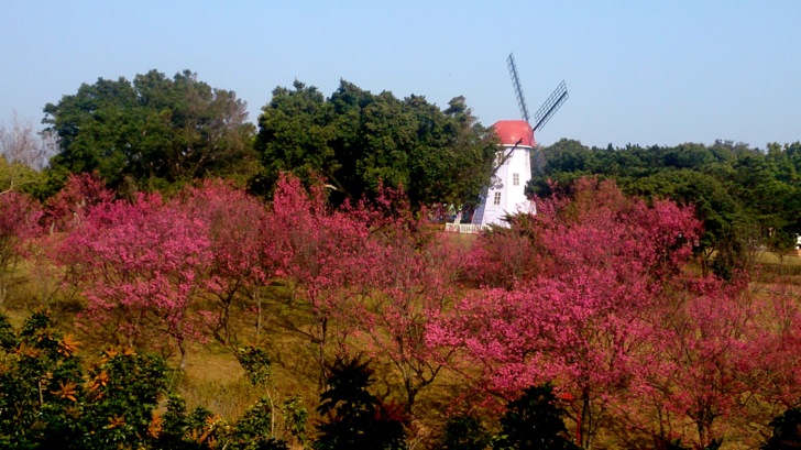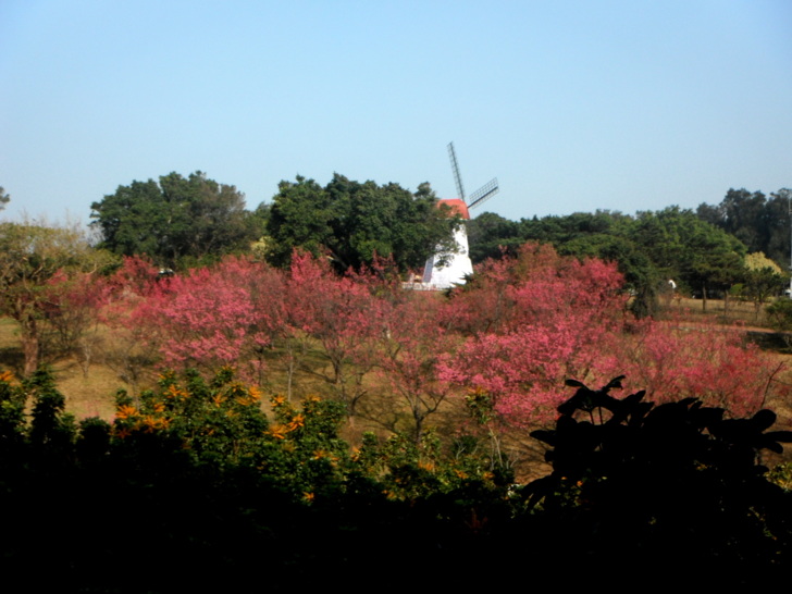 ↓展望台眺望園區,櫻林搭配風車,有歐風,也是一種令人驚喜的美景。