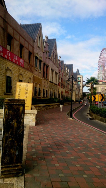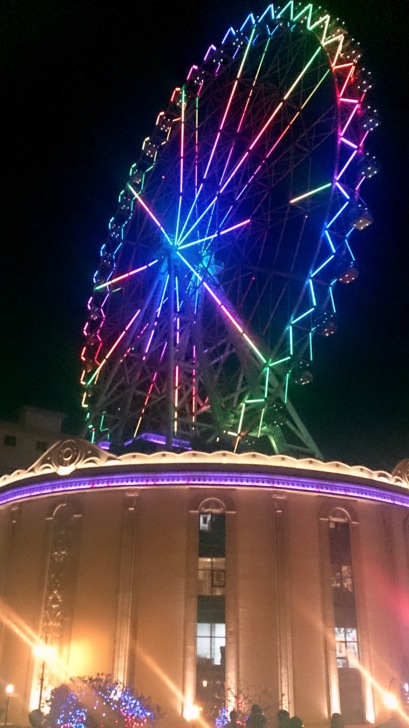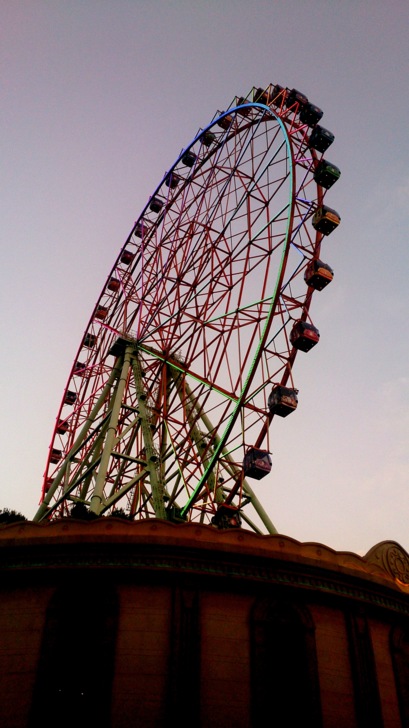 由國三轉國十至燕巢交流道下,循指標行,來到今晚住宿點--高雄義大。已近黃昏,摩天輪的七彩霓虹已打開,辦好入住手續後,開始在義大的活動。