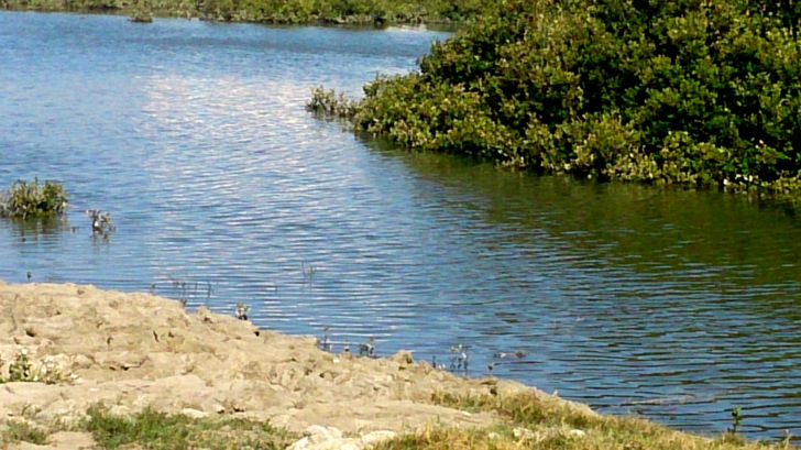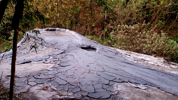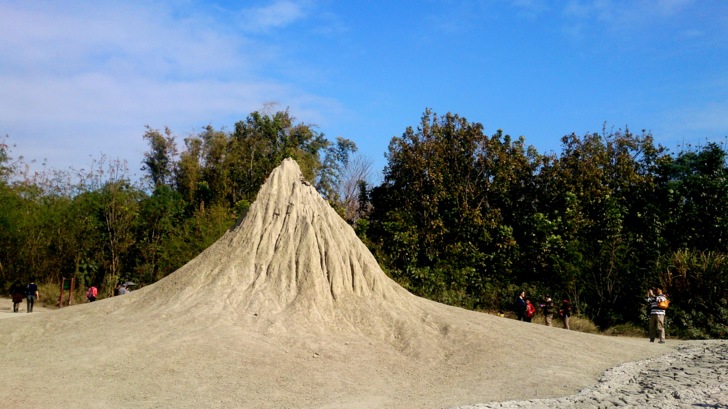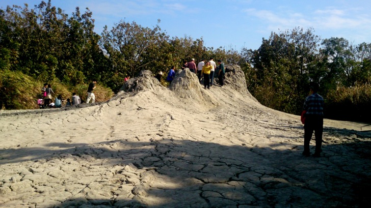 ↓新養女湖---一段淒美故事的命名,也是泥火山區噴發泥漿最明顯的區塊,當地導覽員,用火竹竿點燃泥火噴發口,證明火山仍在運作中。