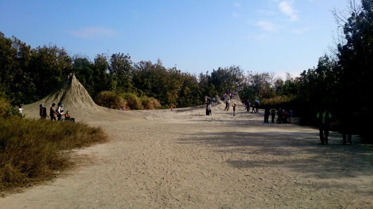 ↓離開義大,取道高師大燕巢校區,原本預期不太會有遊客造訪的小景點---烏山頂泥火山保留區,卻意外出現人潮,原本不寬的產道,會車中,反而出現一點小塞。