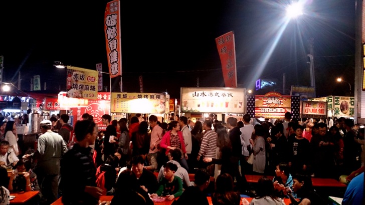 ↓今晚落腳台南。全 打卡最多的地方---台南花園夜市。人潮爆滿到不像話,直可用"寸步難行"或"騰空移動"來形容,不用走就能隨"人潮"前進。逛不到一半,路ㄟ舉旗投降,奮力鑽出人潮洪流,沒想到逛夜市竟比路ㄟ上高山還累......。