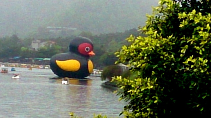 ↑午餐後,前往鯉魚潭欣賞本土台灣鴨,雖是雨天,仍有不少遊客觀賞,可見小鴨魅力無窮。