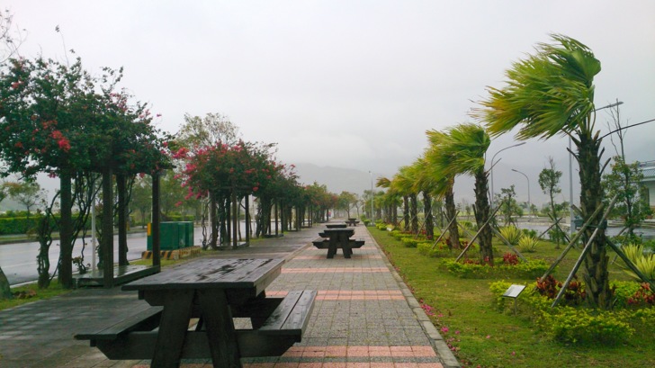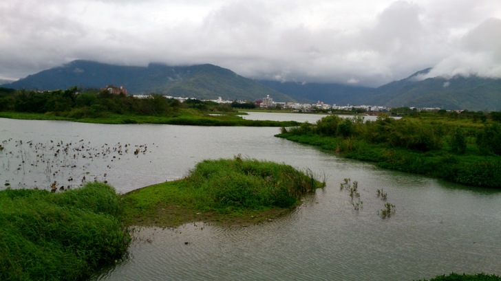 ↓到了池上大波池,雨已停。自行車再度登場,欣賞大波池自行車道風光。