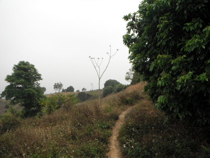 1111叉路登山口旁果園空地停車。該有的展望,卻是一片灰濛,看來路ㄟ來的並不是時候,輕裝便著啟程。取右水泥路緩上。