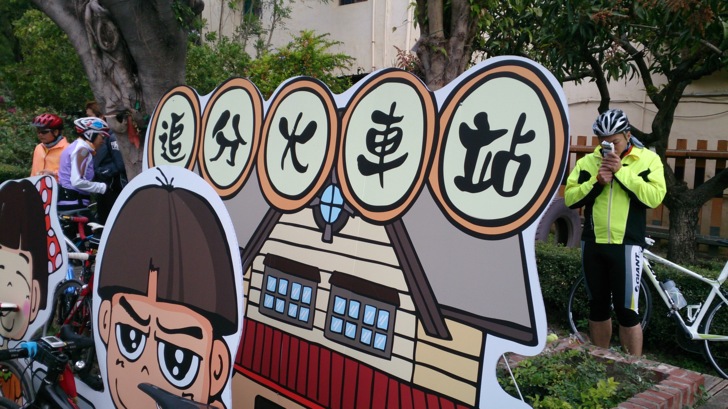↑追分(追婚)車站,許多車友拍照留念,路ㄟ也湊熱鬧的休息與補充水份。