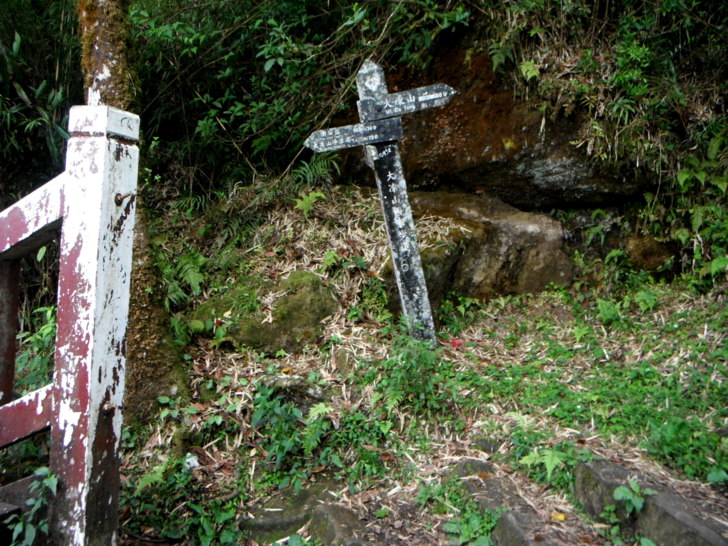 1148涼亭叉路(H1825m)。寬廣的林間叉路,是山友休憩的好地方。指標"右往石獅象、流星崖,直往大凍山700m,25分"。取直行。