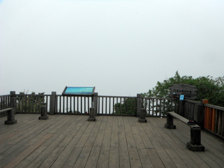 1206登頂大凍山(H1965m,記:1976m)。整個展望亭路ㄟ一人獨享。拍完登頂照,補充行動水,行動糧。該有的展望在濃霧中,卻一點都看不到,不免讓路ㄟ有些大失所望,退一步想,沒有下雨的天氣,讓路ㄟ能順利造訪山林已足夠,美麗得展望本就需要一點運氣,也實在強求不得。